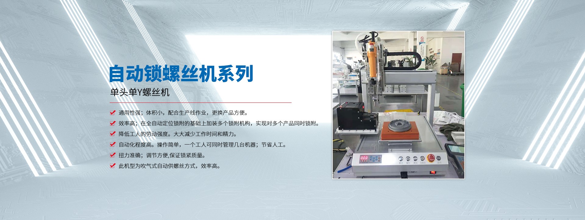 蘇州拓航機(jī)械設(shè)備有限公司成立于2016年,是一家集研發(fā)、制造、銷售及技術(shù)服務(wù)于一體的自動(dòng)化設(shè)備生產(chǎn)廠家,主營(yíng)產(chǎn)品有自動(dòng)螺絲機(jī)、自動(dòng)焊錫機(jī)、自動(dòng)點(diǎn)膠機(jī)、自動(dòng)灌膠機(jī) 脈沖熱壓機(jī),及各類型的非標(biāo)自動(dòng)化設(shè)備。